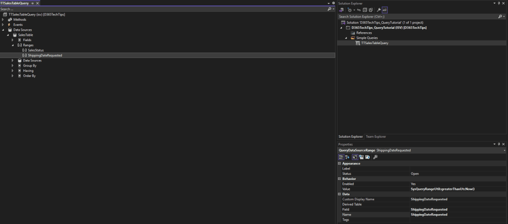 Throughout this post we have been through some more complex subjects related to AOT Queries, where we have seen how to create complex query ranges, the behaviour with validtimestate keys as well as how use an AOT Query through code. The combination of these two blog posts should encapsulate most functionalities that an F&O developer is expected to know and use in their development tasks.