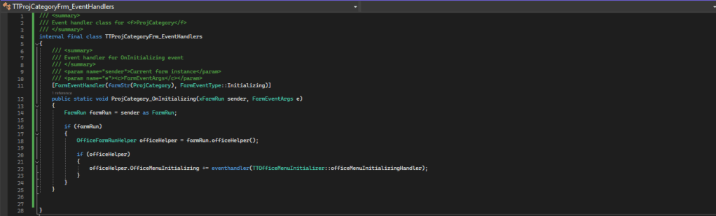 After this is done, one additional step remains. In order to get our changes to take affect on the form, we need to implement on OnInitializing event for the form with the following logic: